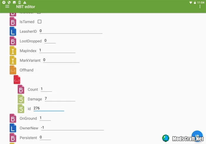 • ID: 276 (алмазный меч, Вы можете ввести любой ID предмета или блока)