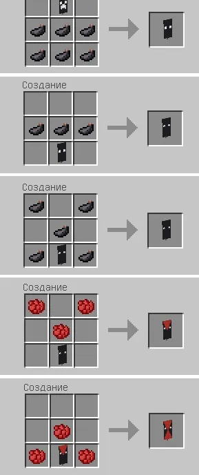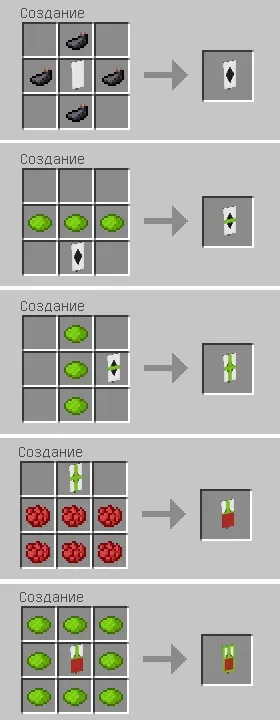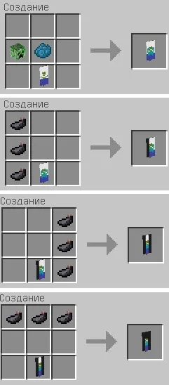 Предметы, которые нужны для крафта: белое знамя, пузырек с чернилами, лаймовый краситель и красный краситель.