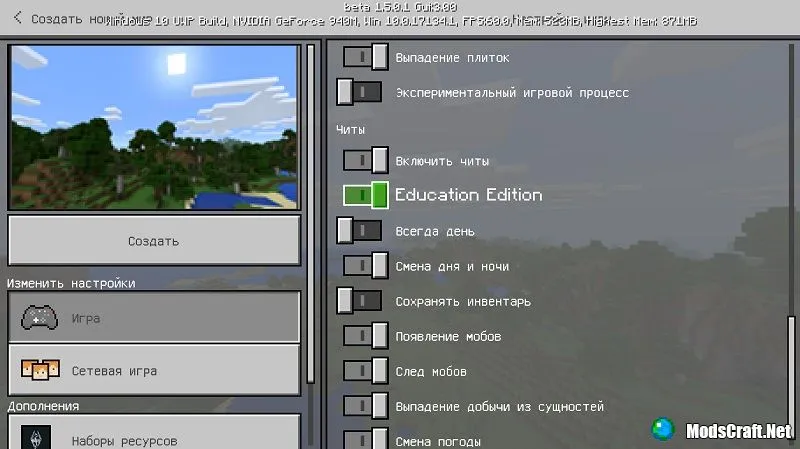 Прежде всего активируйте Education Edition в своем мире или в окне создания нового мира.