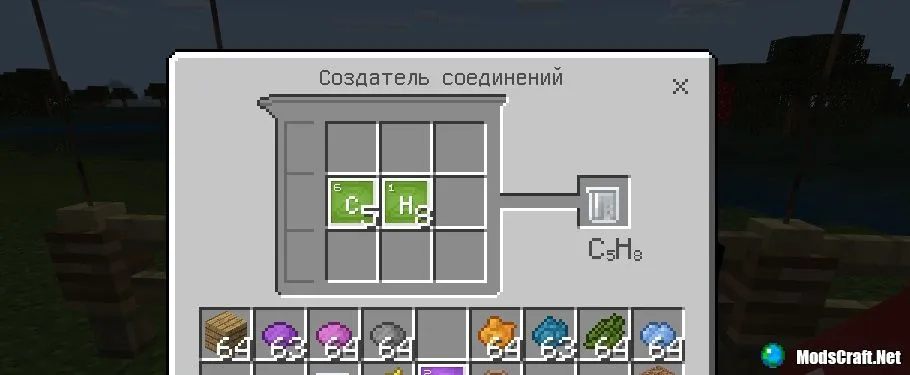 Теперь в создателе соединений нужно создать Латекс, для крафта которого нужно пять элементов углерода и восемь элементов водорода. Для одного шарика нужно шесть таких латексов.