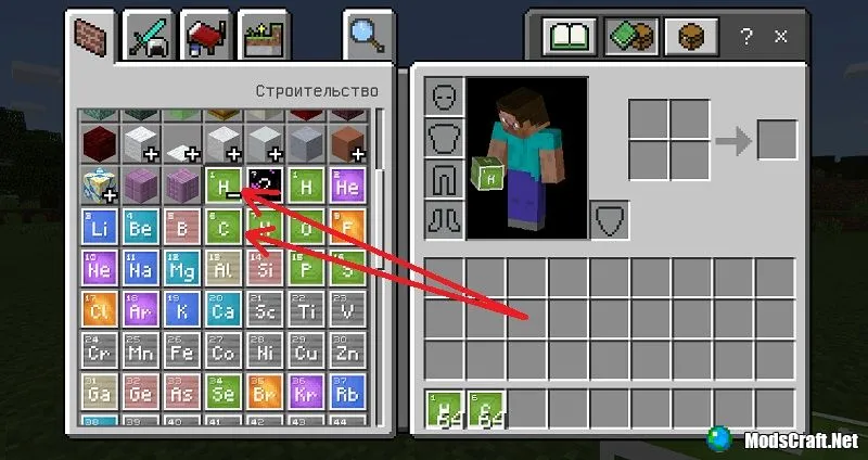 Если Вы играете в творческом режиме, то просто возьмите из инвентаря углерод и водород. Эти химические элементы пригодятся нам для дальнейших химических штучек relieved