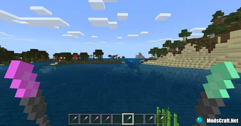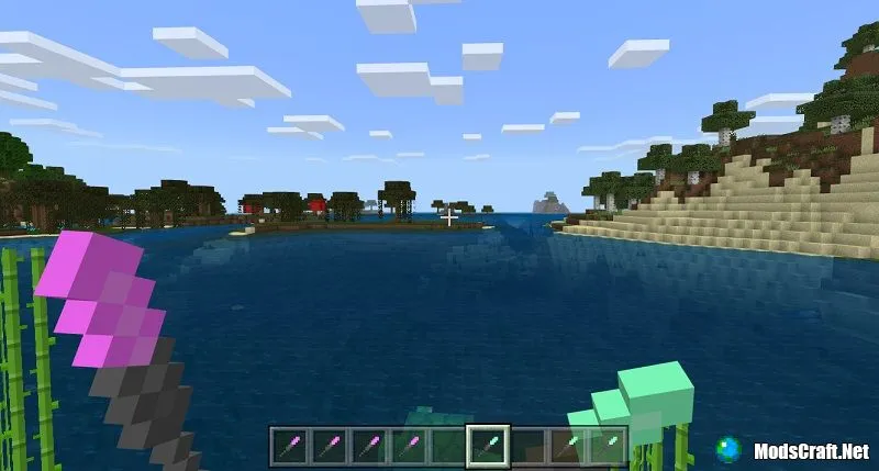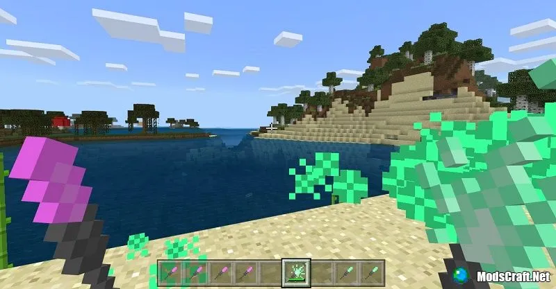Я ещё делал воздушный шарик. Прикольно. К шарику можно привязывать мобов и они будут улетать. А ещё шарик можно лопать стрелами.