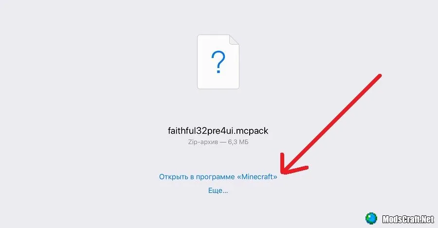 Через какое-то время появится окно, в котором Вам будет предложено открыть файл с помощью Minecraft.
