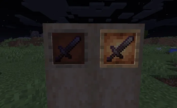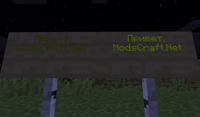Использовать Светящийся чернильный мешок также можно на табличках, чтобы подсветить текст! На скриншоте ниже можно увидеть разницу между текстом на обычной табличке и светящейся.