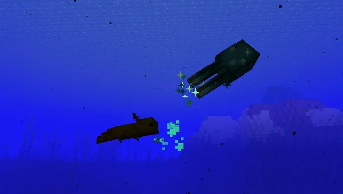 Если на них кто-то нападает, то они перестают светиться на 100 игровых тиков (5 секунд) и стараются уплыть, делая это намного быстрее обычных спрутов.