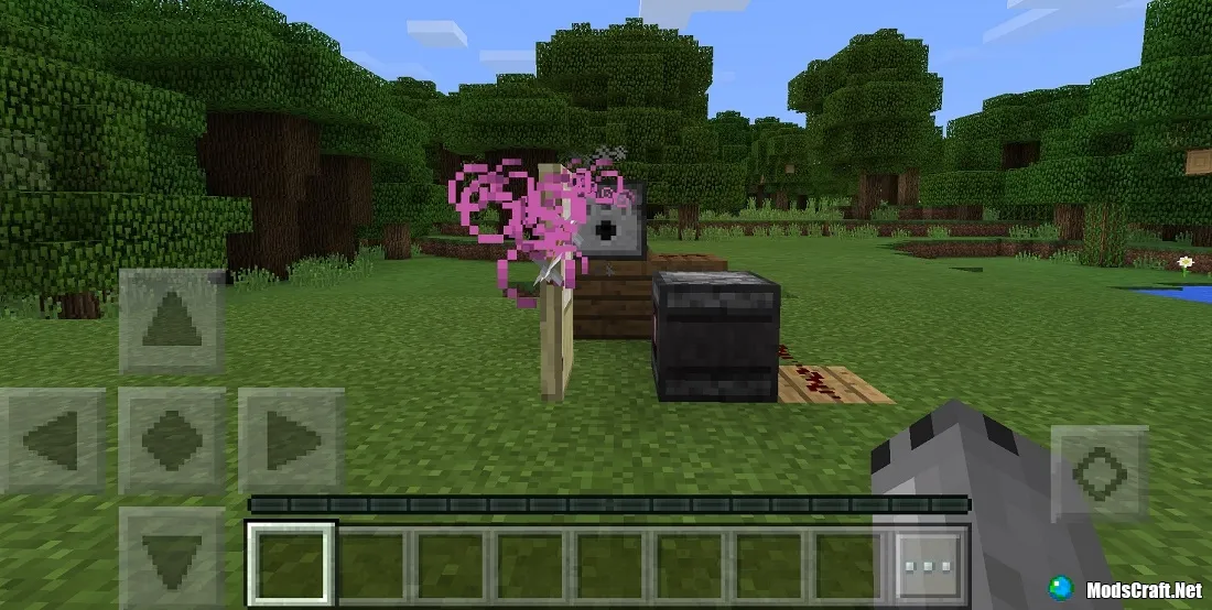 Вот такой вот простой, но довольно полезный механизм, который будет полезен на серверах. Т.е, если какой-то другой игрок начнёт открывать дверь, в него сразу же полетит стрела. В раздатчик можно положить TNT, стрелы с отравлением и яйца монстров. Думаю, это точно отгонит неизвестного вам игрока подальше от вашего дома.