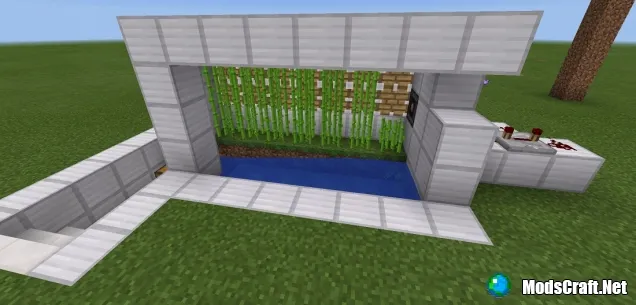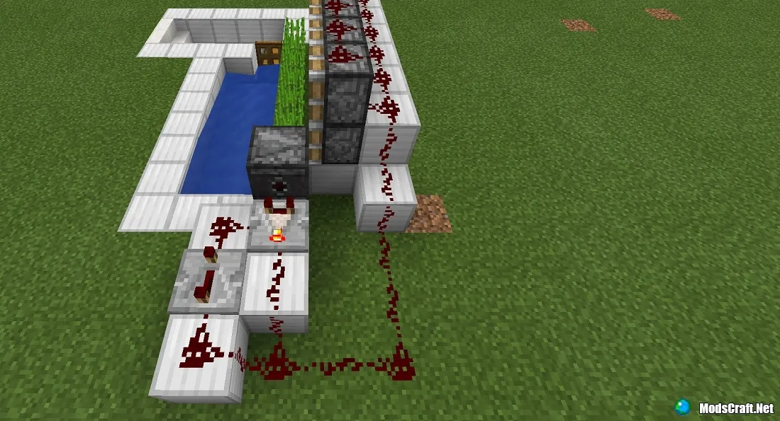 А вот вам более сложная схема, но намного полезнее - схема тростника. Работает она довольно просто. Как только тростник дорастает до 3-х блоков высотой, срабатывает сигнал наблюдателя, затем он активирует поршни и те в свою очередь ломают тростник.