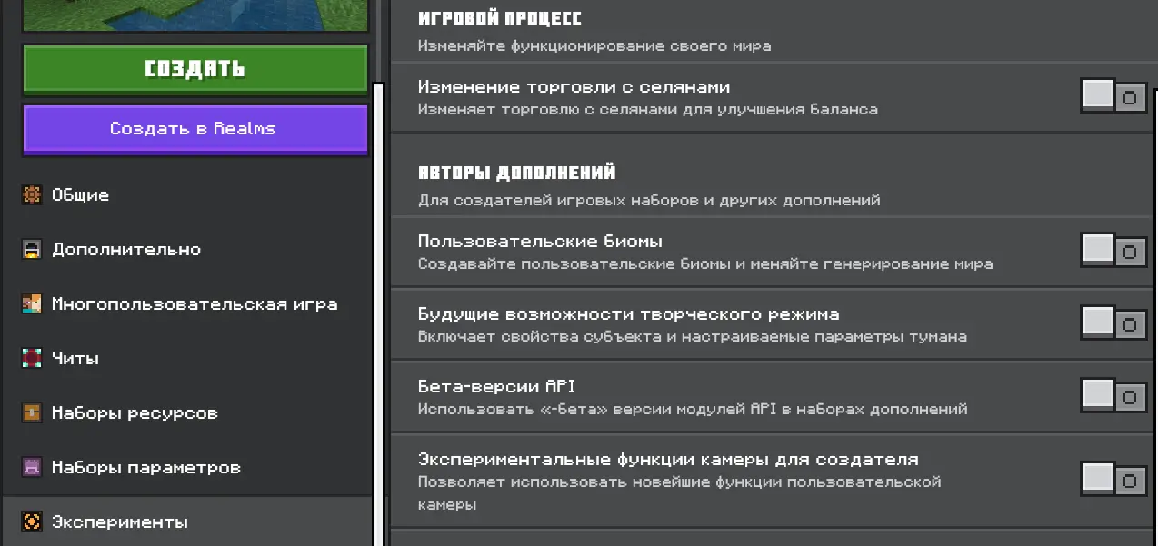 Установка модов с расширением .mcaddon