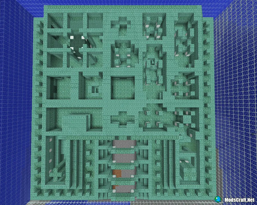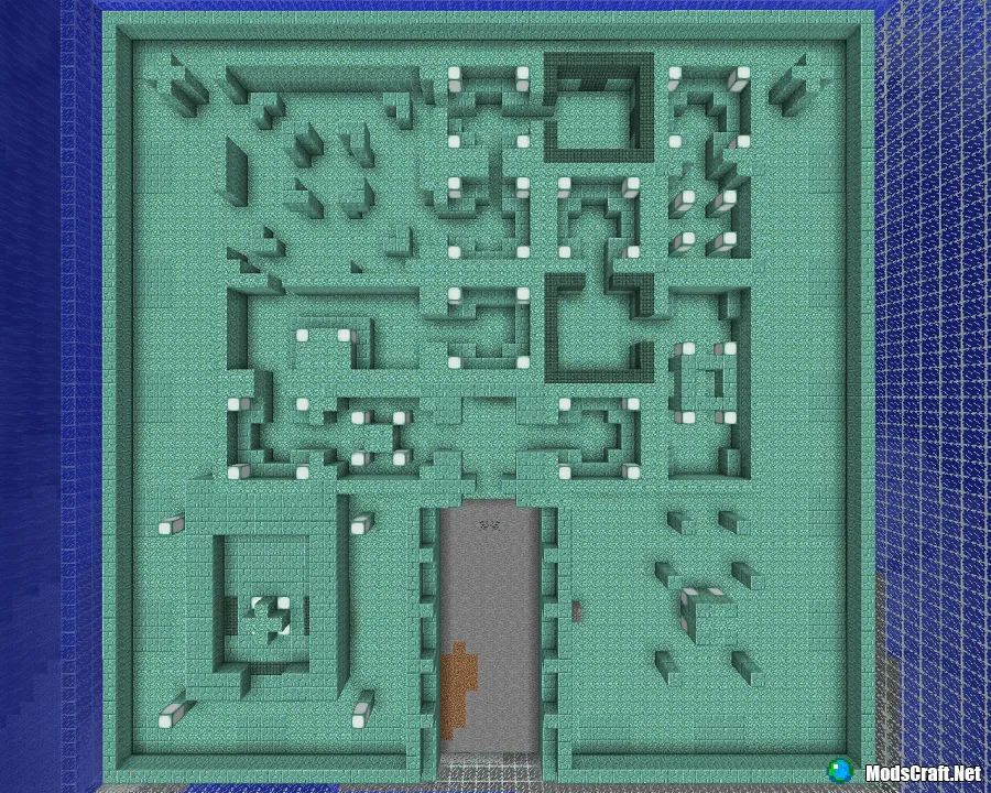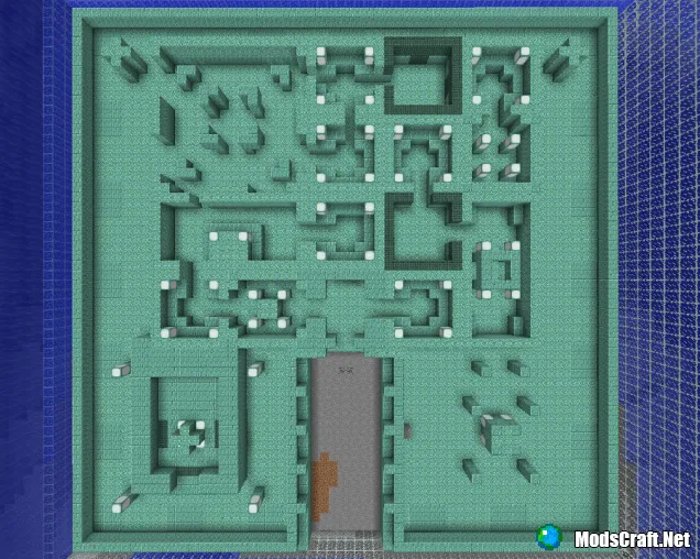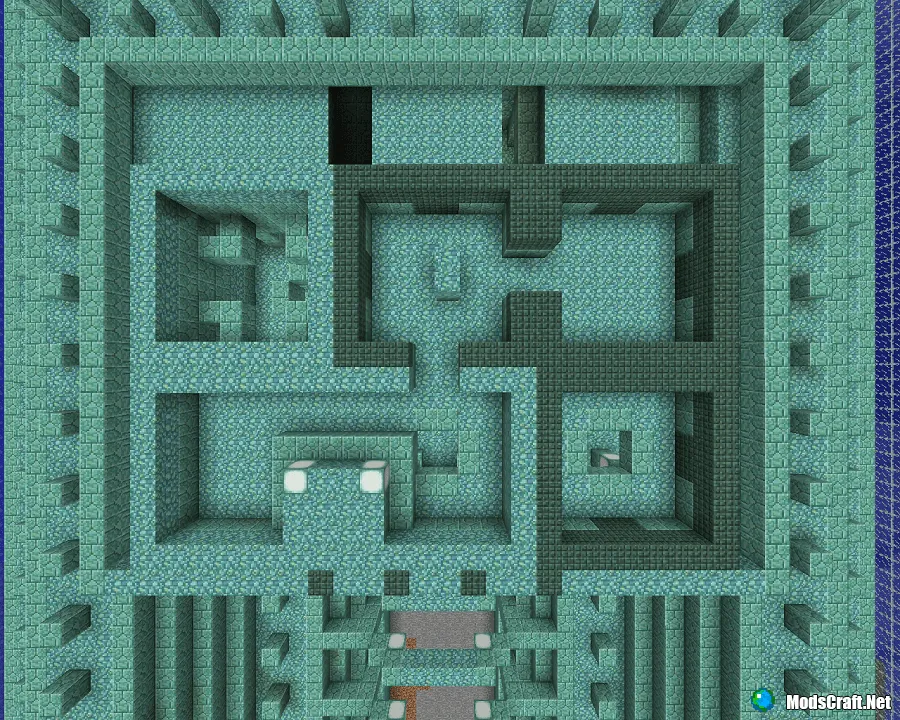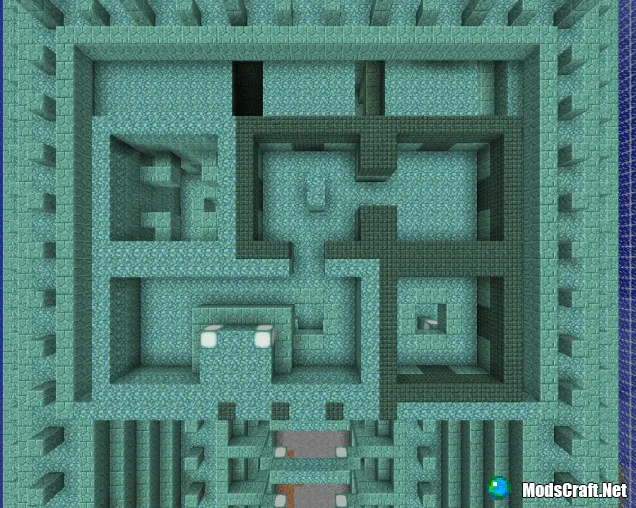 Но это ещё не всё, ведь в крепости есть много комнат, большинство из которых не несут никакой смысловой нагрузки, кроме одной - самой главной. В главной комнате есть хорошо заметный куб 8×8×8 из различных блоков призмарина, за которыми находятся 8 блоков золота. Это так сказать главная награда.