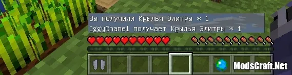 Если Вы хотите быстро получить надкрылья, то воспользуйтесь командой /give @p elytra 1.