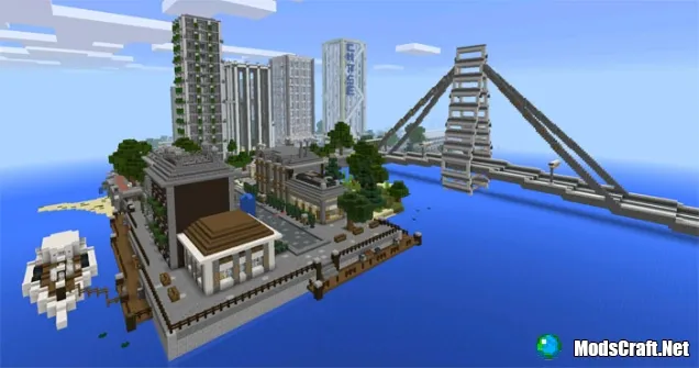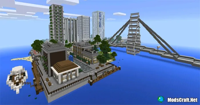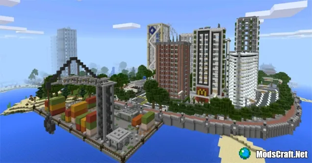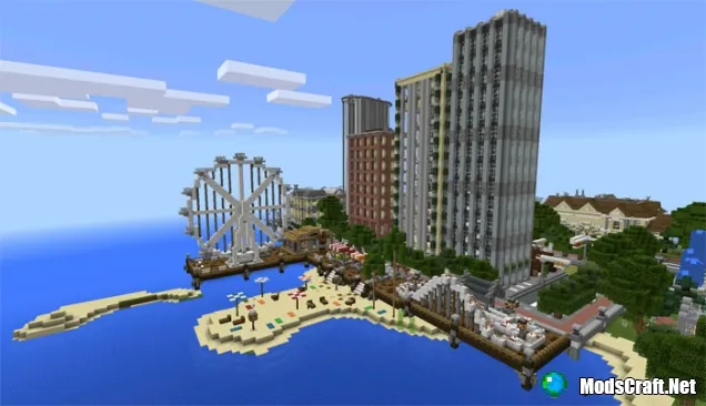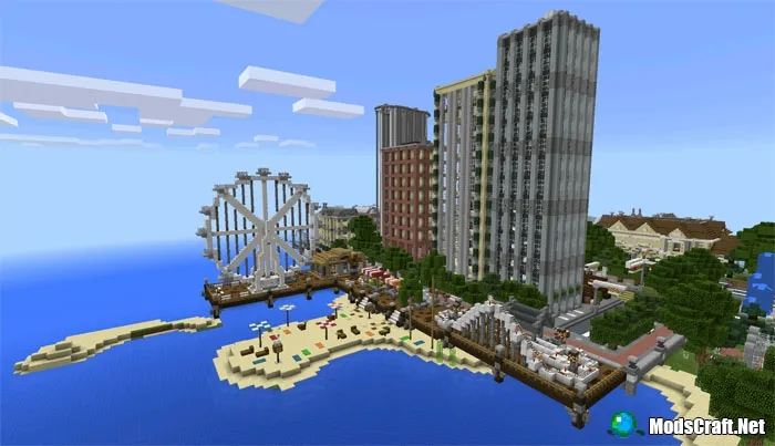 Карта DeepOceanCity разрабатывалась в течении двух месяцев. И сегодня автор выпустил её для свободного скачивания. Город расположен на небольшом острове, который омывается океаном. На этой небольшой территории создатель построил много различных построек. Верфь, пляж с набережной, колесо обозрения, небоскрёбы, множество красивых домов, который делают карту DeepOceanCity невероятно красивой.