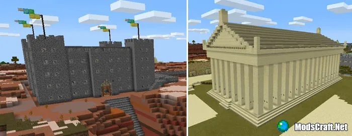 Mesaville это не просто очередная карта с небольшим городом для Minecraft Pocket Edition, ведь на ней есть куча различных построек, начиная от военно-морской базы и заканчивая впечатляющей крепостью и другими интересными сооружениями.