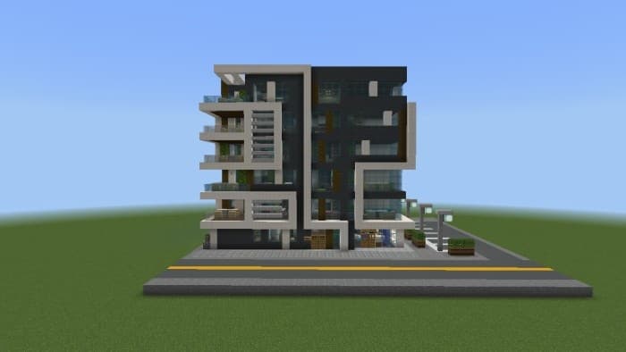 Карта Modern Apartment представляет собой шестиэтажный жилой комплекс в современном стиле. На первом этаже расположены уютная квартира и небольшой магазин для удобства жильцов. Со второго по шестой этаж — по три просторные квартиры с большими окнами и балконами, создающими ощущение уюта и комфорта. Идеальное место для стильного выживания или ролевых проектов!