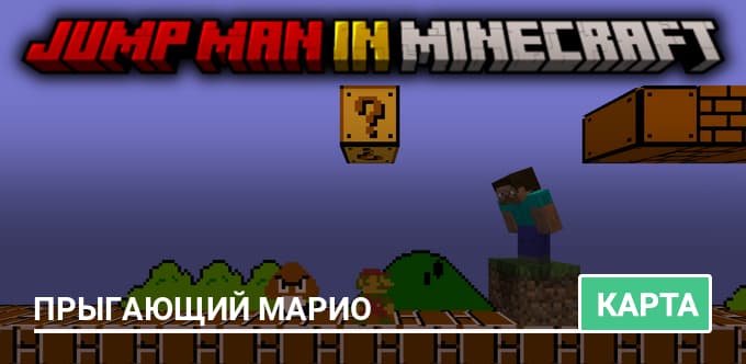 Карта Jump Man (Mario) переносит легендарный первый уровень из игры Mario в мир Minecraft. Все классические элементы — враги, монеты, трубы и даже музыка — воссозданы с максимальной точностью. Игроки могут выбрать персонажа и отправиться в приключение, как в старых добрых 8-битных временах. Поддерживается кооператив на двух игроков, что делает прохождение ещё более захватывающим. Эта карта — настоящее путешествие в детство, теперь в блоках Minecraft.
