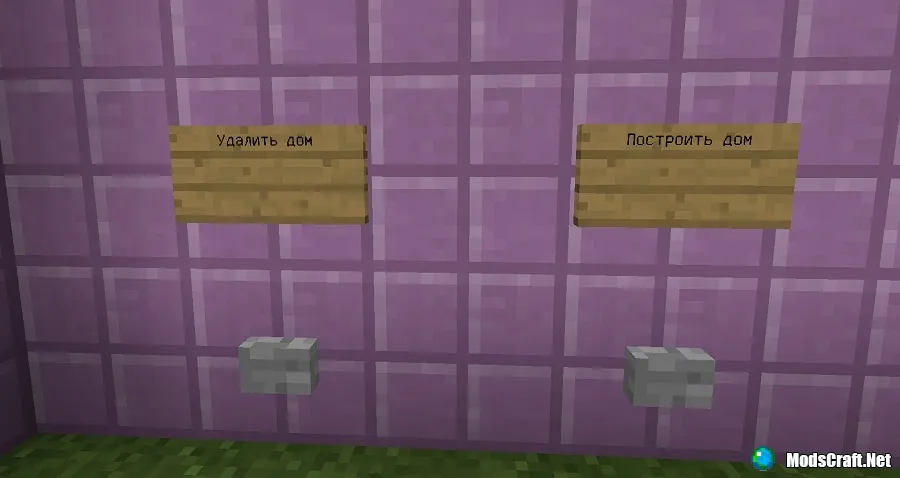 Используйте кнопки, чтобы удалить или построить дом. Все действия командный блок обрабатывает в течение нескольких секунд.