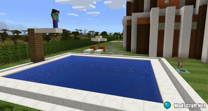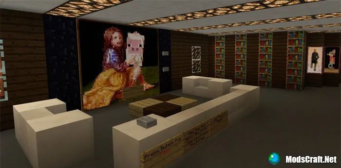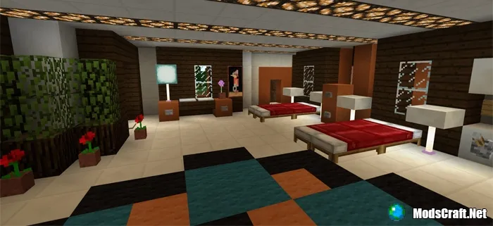 На этой карте Вы построен очень большой особняк, который идеально подходит для выживания в Minecraft Pocket Edition. В доме есть одна спальня (с 8 кроватями) и много других комнат, которые имеют различные редстоун-механизмы, благодаря которым Вы сможете частично автоматизировать свое выживание.