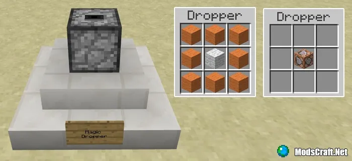 Найдите "волшебный выбрасыватель" и поместите в нем все предметы, необходимые для крафта (в моем случае - это командный блок). Затем закройте интерфейс выбрасывателя и снова откройте его, чтобы получить созданный блок.