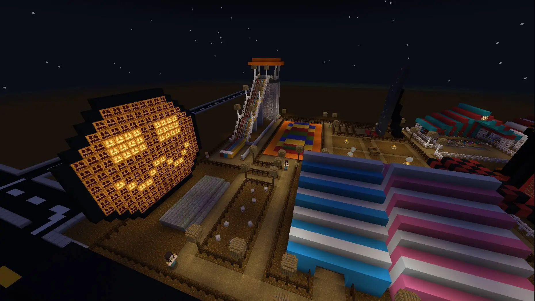 Атмосферная карта AJ's Pumpkin Farm, наполненная осенним настроением и духом весёлого ужаса. Здесь вы найдёте множество развлечений: от красочных каруселей и американских горок до мрачных, но увлекательных домов с привидениями.
