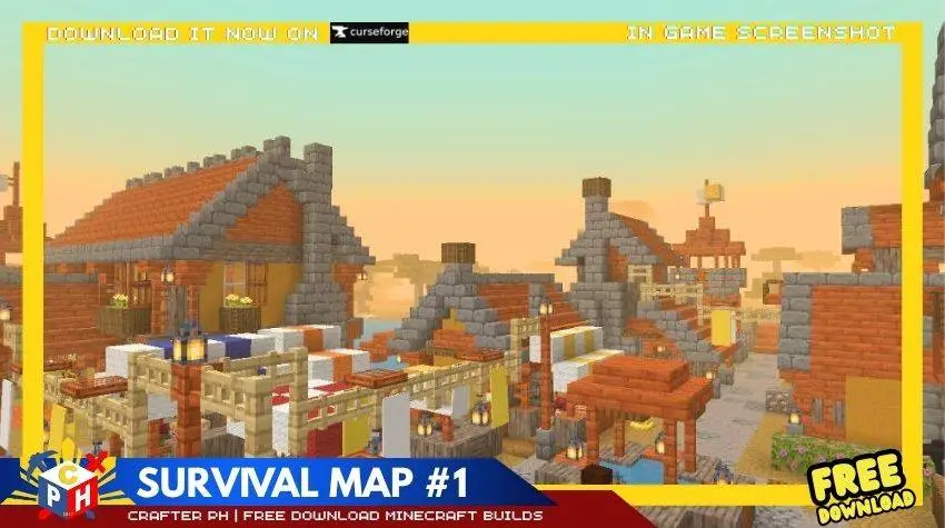 Карта CPH Survival Village - Town of Acruzia предлагает отправиться в город Арузия — деревню в саване, которая выросла в настоящее поселение для выживания. Но спокойная жизнь нарушена соседним лагерем разбойников, и именно игроку предстоит защитить жителей.