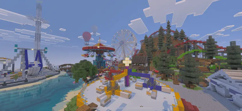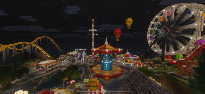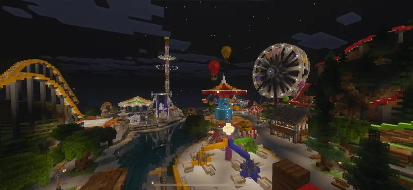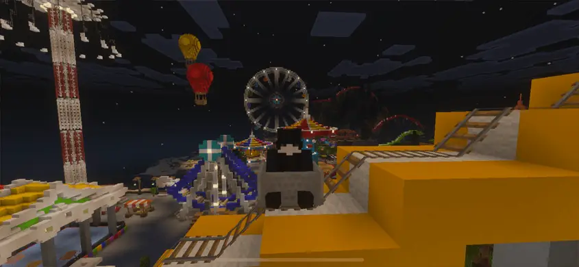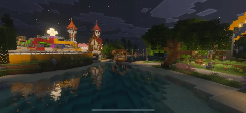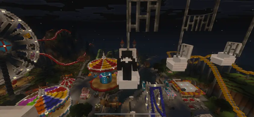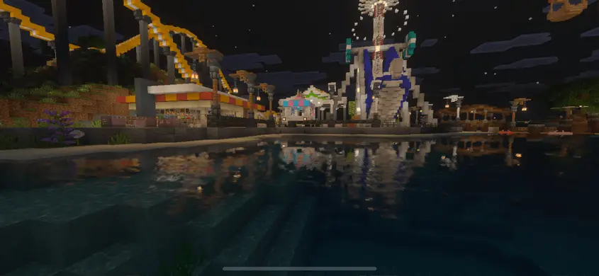 На карте MOIPARK вас ждут множество атракционов в парке развлечений, интересный локации и мини-игр. В ночное время весь парк начинают красиво освещать все различные фонари и лампы, делая его красивее и интересней.