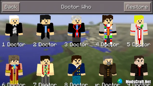 Кроме того аддон добавляет скин пак со скинами всех Докторов!