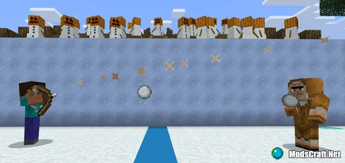 На карте «Snowball Brawl» создана отличная мини-игра на двоих для Майнкрафт ПЕ. Вам предстоит сражаться со своим соперником на специальной арене, используя различные предметы и ловушки!