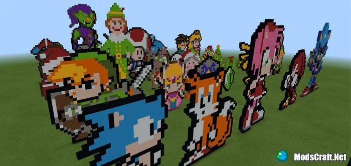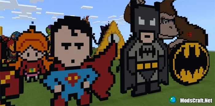 «Pixel Playground» это не просто какая-то карта для Minecraft Pocket Edition, это целый огромный проект, который постоянно обновляется! На данный момент на карте собрано более 250 различных пиксельных произведений, среди которых есть герои комиксов, игр и многое другое!