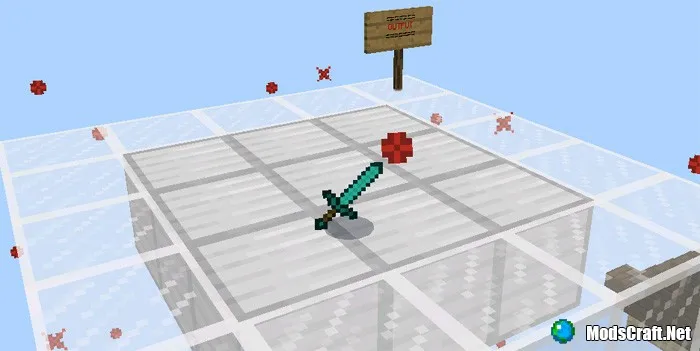Для начала Вам нужно определиться с предметом или блоком, который Вы хотите создать. В этом примере я решил сделать алмазный меч. Для этого крафта нужна 1 палка и 2 алмаза. Используйте кнопки на стене, чтобы получить все необходимые компоненты.