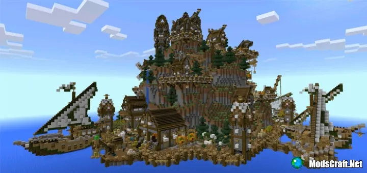 Карта The Rykene Village для Minecraft Pocket Edition представляет из себя средневековый остров на котором расположено много домов и много других построек, которые мы советуем вам изучить. Также есть порт у основания горы, в нём расположено несколько крупных кораблей.