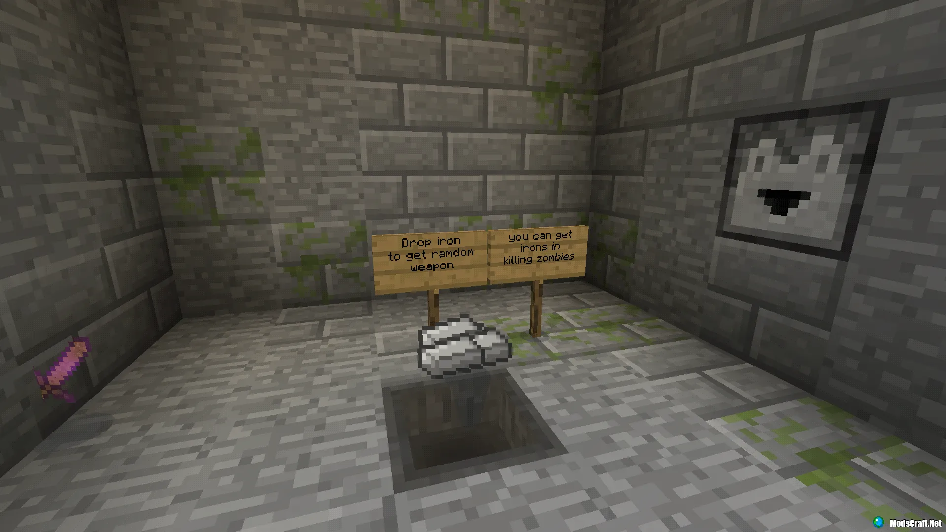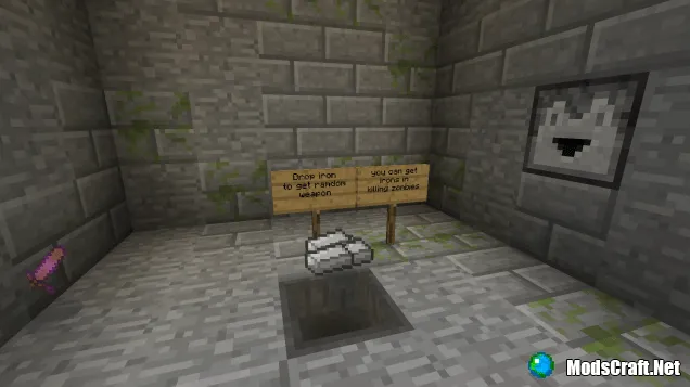 В некоторых случаях зомби после смерти будут дропать железные слитки, которые вы можете использовать для получения случайного оружия. Просто положите слиток на загрузочную воронку, которая находится в комнате возле спавна и выбрасыватель выдаст случайное оружие.