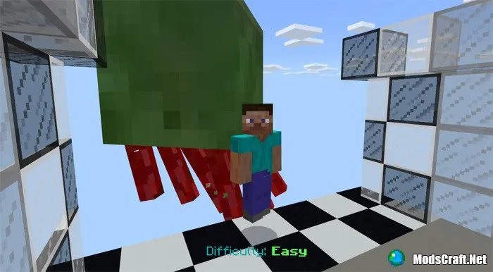 Предлагаем пройти увлекательную карту под названием «Flying Zombies» с мини-игрой, в которой Вам нужно будет пройти серию испытаний с паркуром, но не думайте, что все так просто! Огромная голова в виде зомби будет постоянно следить за Вами и уничтожать платформы!