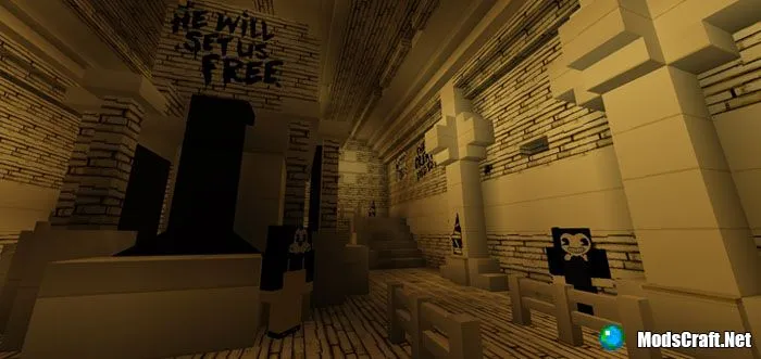 Эта приключенческая хоррор-карта для Minecraft: Bedrock Edition была вдохновлена игрой «Bendy And the ink machine». Вам предстоит отыскать 12 различных элементов и принести их к Вашему старому другу. Всё это будет проходить в очень жутком месте и Вы даже встретите несколько других персонажей. Но не забывайте, что это хоррор-карта!