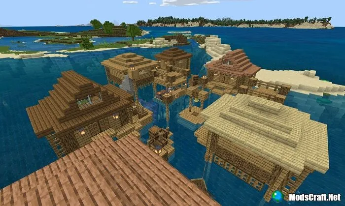 Ищите уютную карту для выживания, мини-игр с друзьями или творчества? Тогда обратите внимание на карту под названием «Stilt Village», на которой выстроена небольшая деревушка по среди океана на сваях. Используйте ее для любых своих целей!