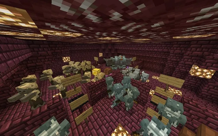 Карта «Nether PVE Dungeon Crawler» создана для всех любителей ПвЕ-сражений в Майнкрафт ПЕ и на ней создан большой лабиринт с разнообразными ресурсами, которые можно использовать против монстров.