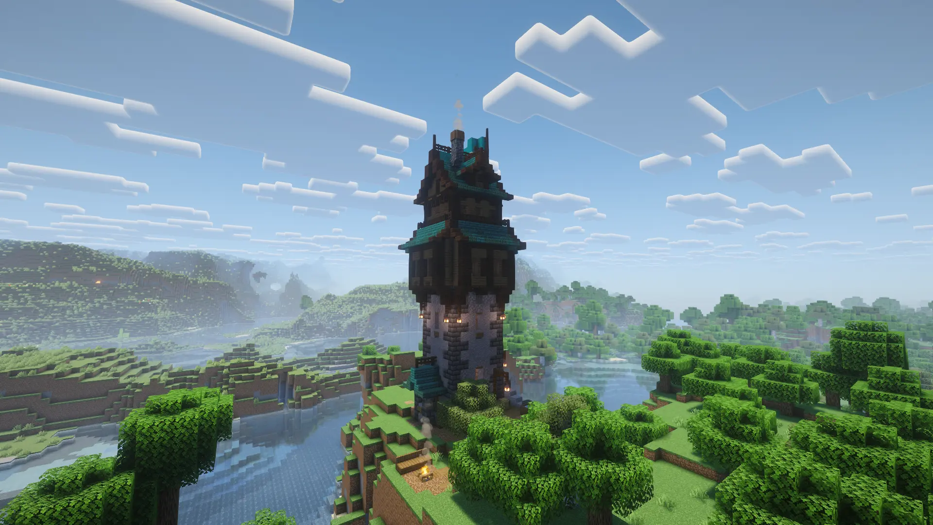 Карта Medieval Fantasy Tower переносит игроков в средневековую башню в лесном биоме. Башня имеет несколько этажей с полностью обставленными интерьерами, включая специальные комнаты для кузнечного дела, зачарования, варки зелий и другие. Рядом находится большая деревня.