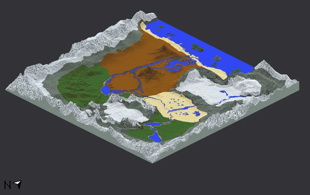 - Основные биомы: равнины, пустыня, лес и снег с кастомным подзолистым биомом