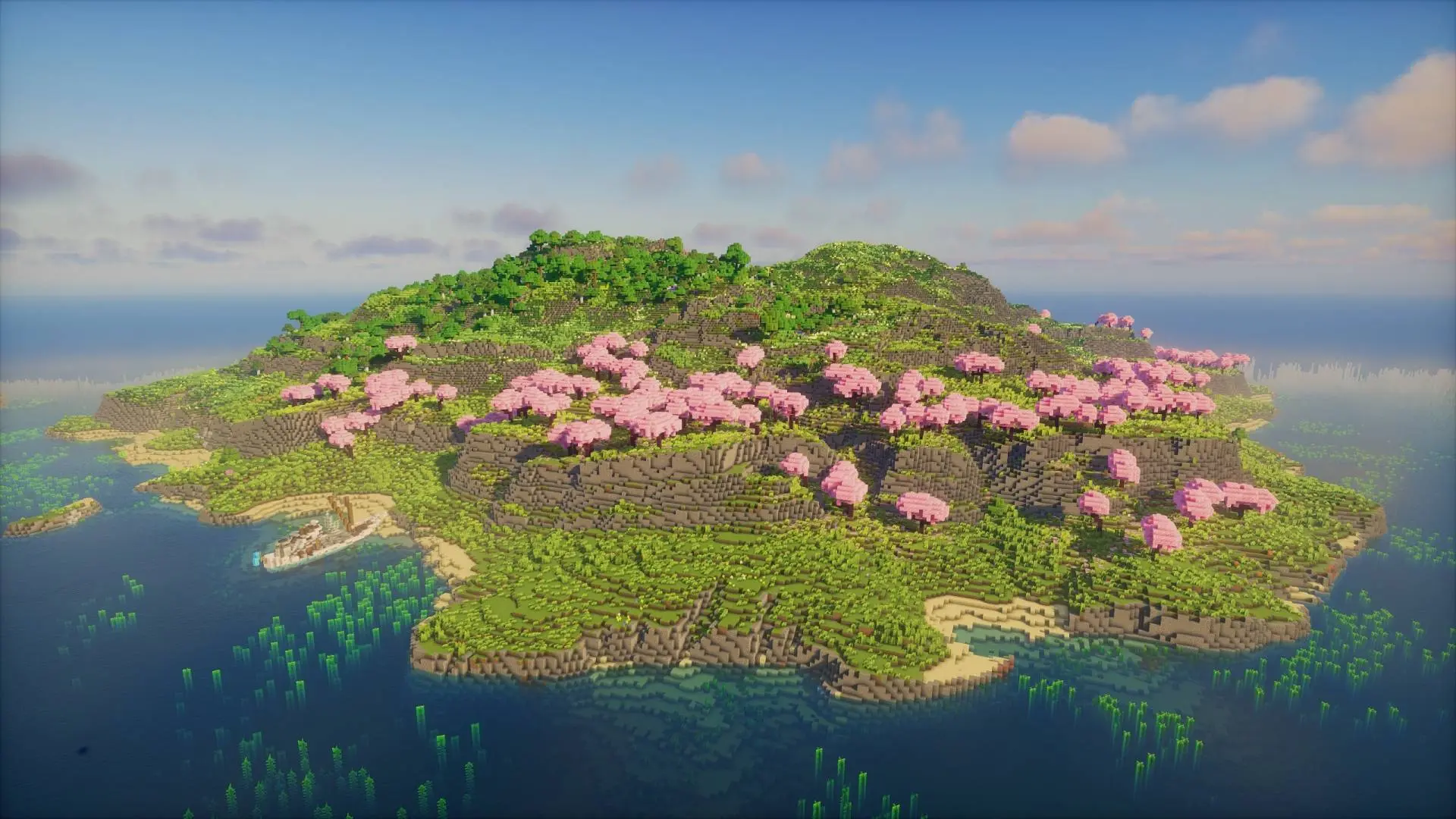 - Биомы: вишневый лес, тайга, равнины, цветочный лес
