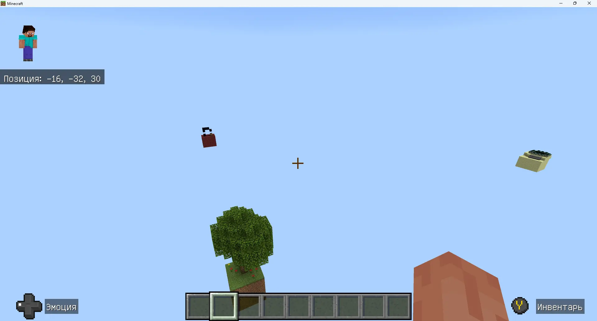 На этой карте создано классическое выживание SkyBlock с тремя островами: начальный, портал в Незер и портал в Край. Исследуйте, развивайтесь, сражайтесь с мобами и доберитесь до Края!