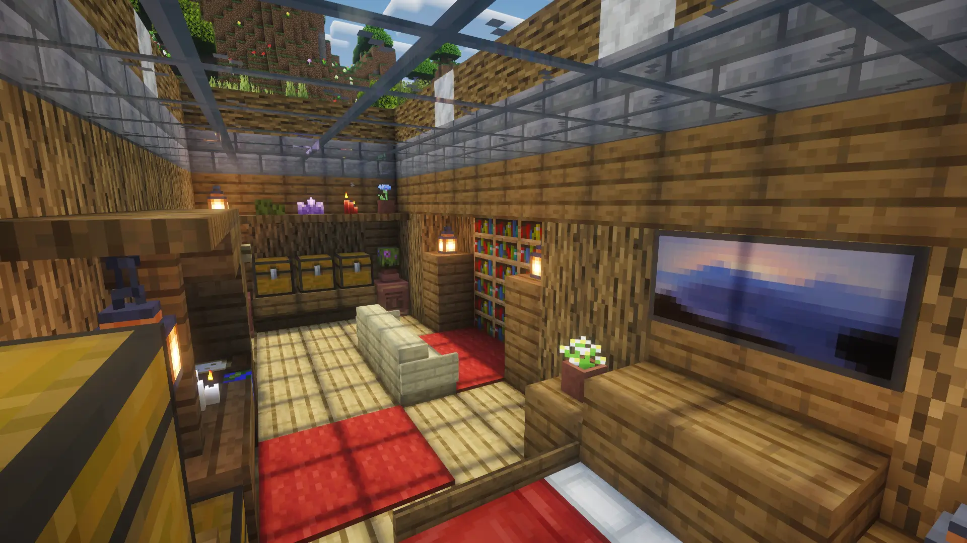 Карта Small Underground Base предлагает компактную подземную базу с чистой и функциональной планировкой. Лестница ведёт вниз в базу, где обе основные комнаты имеют красивые стеклянные потолки, пропускающие естественный свет.