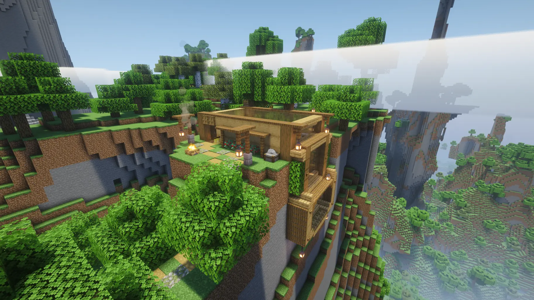 Карта Small Cliff House переносит игроков в небольшой уютный дом на скале. Дом построен на горе и имеет несколько этажей с комнатами, большими окнами и видом на горы. Рядом с домом расположена небольшая пшеничная ферма.