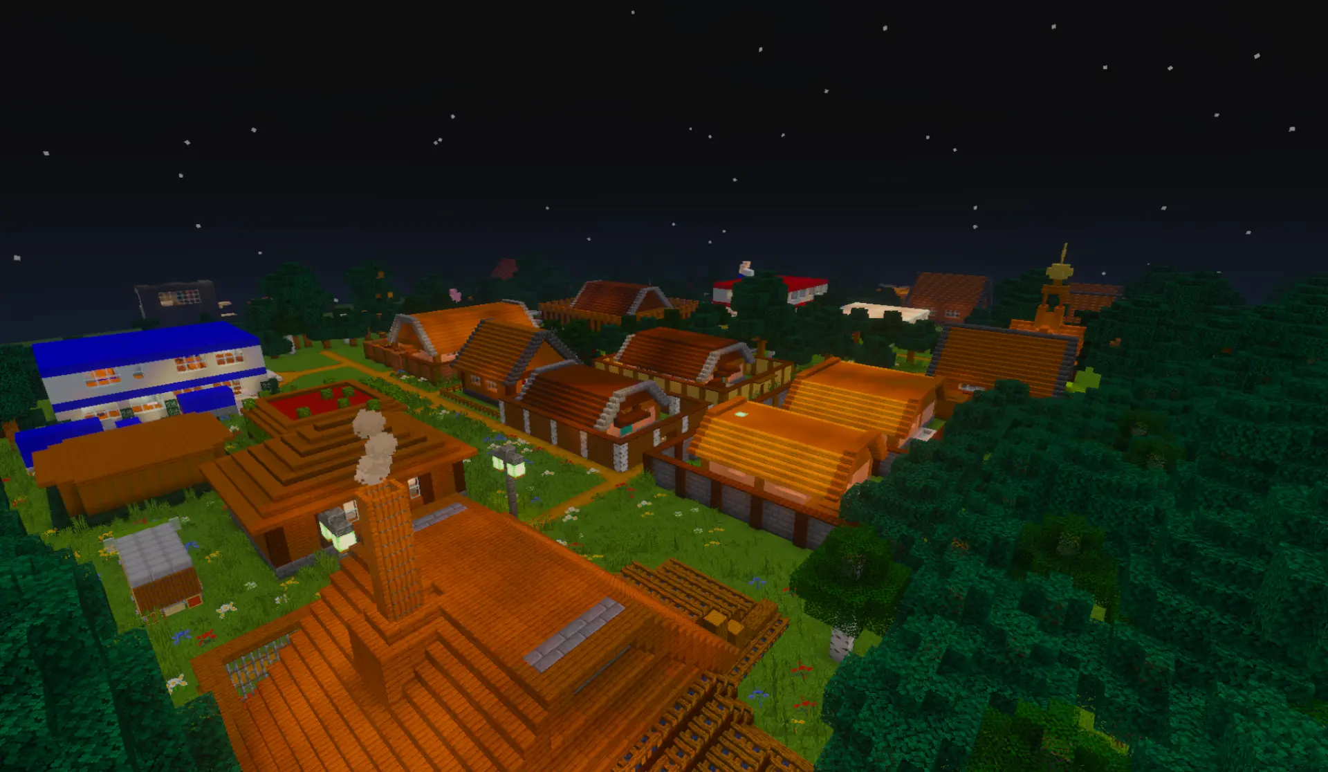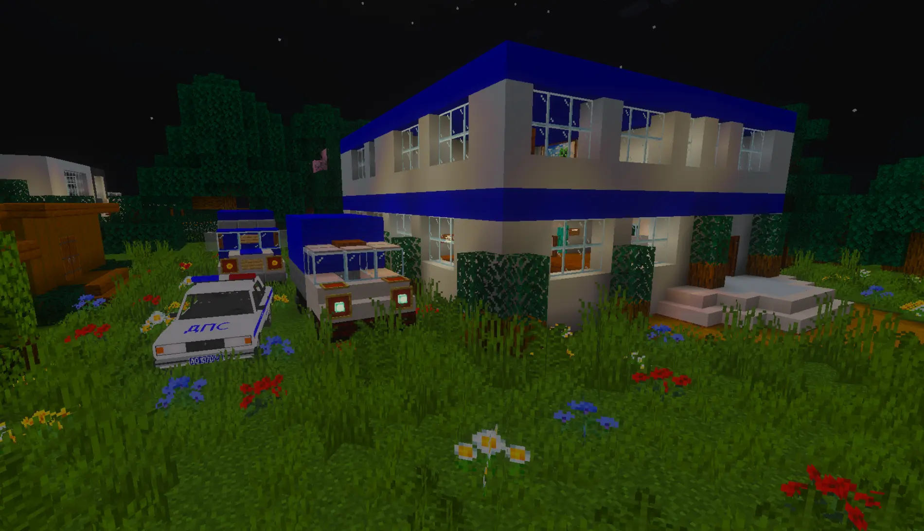 Добро пожаловать в русское село Комарино! На карте представлены типовые жилые дома, шиномонтаж, магазин и другие привычные постройки, характерные для небольшого села.