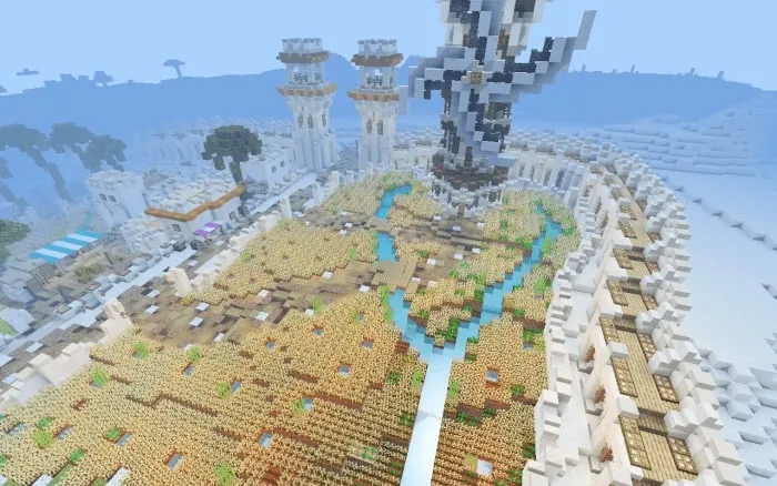 На карте Modified Desert Village для Майнкрафт ПЕ была использована ванильная деревня, которая была полностью изменена и появились новые дизайнерские решения! Это очень большая деревня с несколькими районами, где вы можете посетить дома жителей и собрать урожай, все дома в этой деревне имеют интерьер.