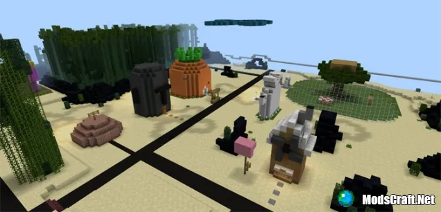 Бикини-Боттом - это город, в котором происходят основные действия мультсериала "Губка Боб Квадратные Штаны". На этой карте для Minecraft Pocket Edition вы найдёте много знакомых мест из этого мультсериала: домик самого Губки-Боба, Красти Краб и многое другое!