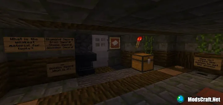 Карта Answer My Riddle: Quarter Maze представляет из себя ряд загадок, которые связаны с игрой Minecraft. Докажите, что вы истинный игрок этой игры, ответив на большинство вопросов. Это довольно интересно, так как карта не включает в себя какого-либо задания, боев или же паркура..