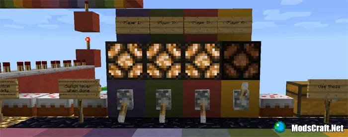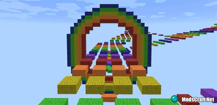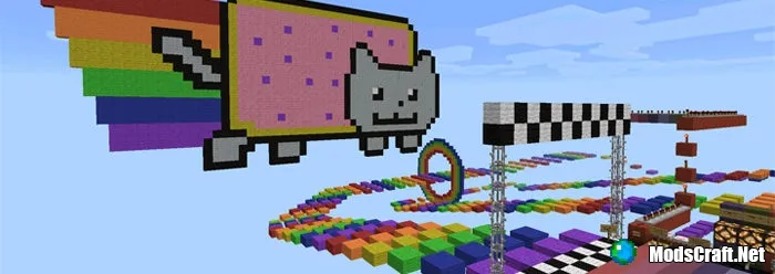 Nyan Lights PE - это мини-игра гоночного типа, для которого вам потребуется 4 игрока. Выпейте зелье скорости для увеличения скорости, чтобы перепрыгивать через блоки. Доберитесь до финиша первым, стараясь не упасть и не умереть. Там расположена специальная редстоун система, которая будет показывать каким вы пришли к финишу.