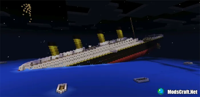 На этой карте вы сможете увидеть тот самый Титаник, который тонул в те самые часы. Это действительно пугает, но тем не менее эта история заслуживает того, чтобы её воссоздали в Minecraft как в память о великой трагедии.