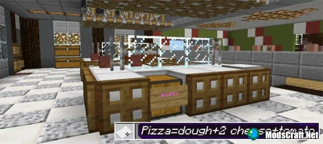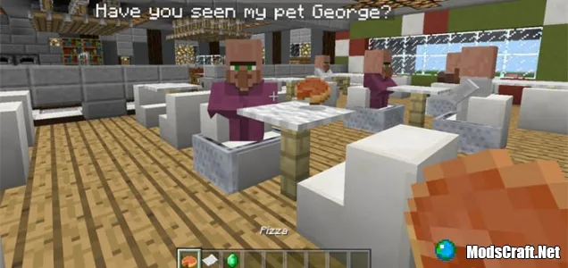 Карта Chez Food состоит из одной большой кухни и обеденного зала для гостей. На карте вы найдете множество редстоун-приспособлений, с помощью которых можно приготовить пиццу или же другие продукты питания, для того, чтобы накормить жителей. Станьте поваром в Minecraft PE и обслуживайте своих посетителей с картой Chez Food!