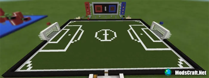 Футбол в Minecraft PE немного отличается от обычного. Возьмите инструмент из сундука в зависимости от уровня сложности и используйте его, чтобы столкнуть другого игрока в его ворота.