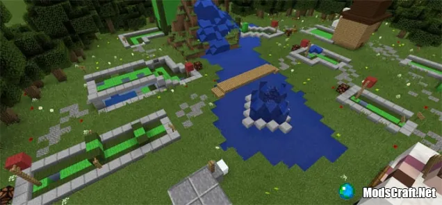 На карте есть 8 полей для мини-гольфа. Данная игра довольно проста. Просто попадите мячиком в лунку. если вы не попадете, то заберите мяч и попробуйте снова.