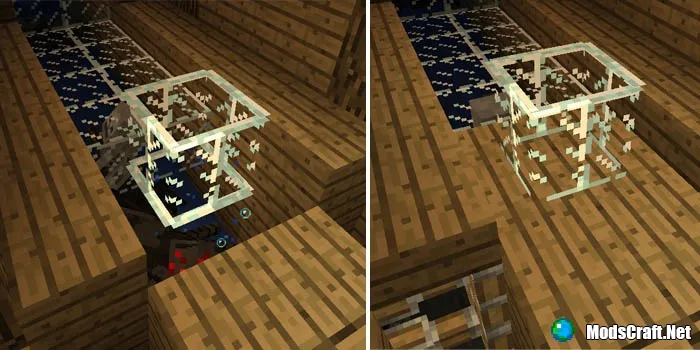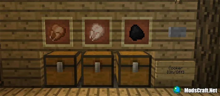 А вот ещё один довольно простой, но очень даже полезный механизм - плита. Положите немного угля в сундук справа, затем положите сырую курицу и через несколько секунд вы получите приготовленную курицу.
